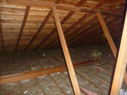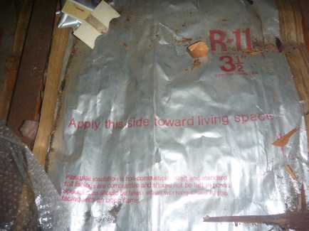 Clearly, right on the surface of the paper face were some instructions, “Apply this side toward living space.” I was in the attic space and it was definitely not set up for “living.” The reason for this label has to do with the movement of moisture vapor as it leaves the living space and enters an unheated space. With the vapor barrier/paper face installed improperly, water vapor that is traveling up through the ceiling and through the insulation hits the big temperature difference at the paper face and condenses into liquid. Here the liquid water is trapped and will cause bad things to happen to the home (mold, rot, deterioration, ect). When the paper face is installed properly the vapor will not hit the dew point till it is past the vapor barrier/paper face and if the vapor condenses into liquid in the fiberglass batting, it can breath and escape and most importantly, is not trapped!