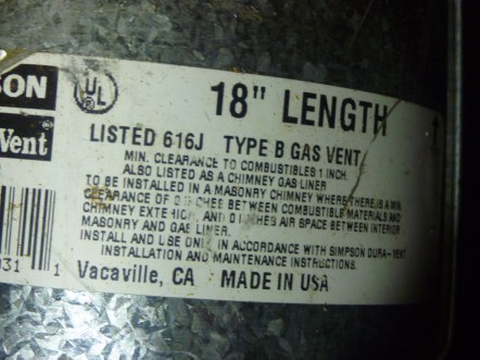 A few feet away I saw another label. The manufactures for the gas flue for the water heater wanted to help the installers and make sure to remind them of proper installation:
