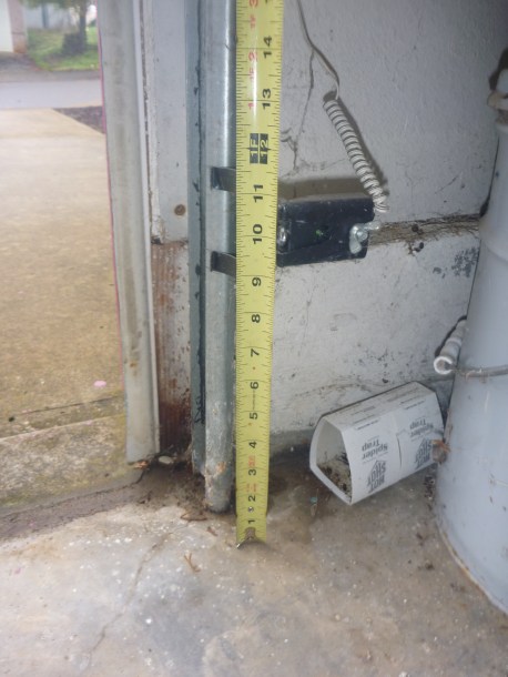 Most manufactures state that the beam should be no higher than 6″ off the ground. The homes around Salem, Oregon that I inspect usually have foundation walls that extend up to around 9″ above the floor of the garage. Consequently I usually see the little beams installed around 10″ above the floor, after all it is much easier to attach to wood sill plate than have to drill and anchor into concrete!
